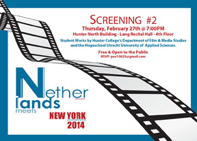 Sixteen students from a top-ranked university in the Netherlands will hone their skills in media arts during an 14-day program at Hunter College, sponsored by the Department of Film and Media Studies. The students will be led by John Driedonks, and Hunter graduate Brian Maston, who earned a Hunter BA in Film (2003) and now teaches as a senior lecturer in Film and Media Studies at the Hogeschool Utrecht—the Utrecht University of Applied Sciences.