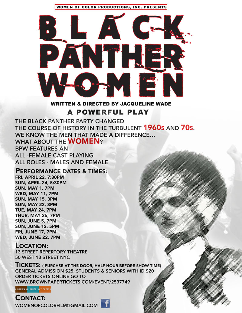 Flyer for Jacqueline Wade's play Black Panther WomanIMA student Jacqueline Wade’s new play will be performed at the