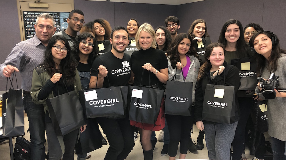 Professor McCarthy’s news video students are camera ready thanks to a make lesson from Glam Squad make up artist Nick Scalzo. Scalzo explained to students that high definition cameras are designed to show detail, including every blemish, wrinkle and scar, but that the right kind of makeup can conceal these imperfections and enhance your look.