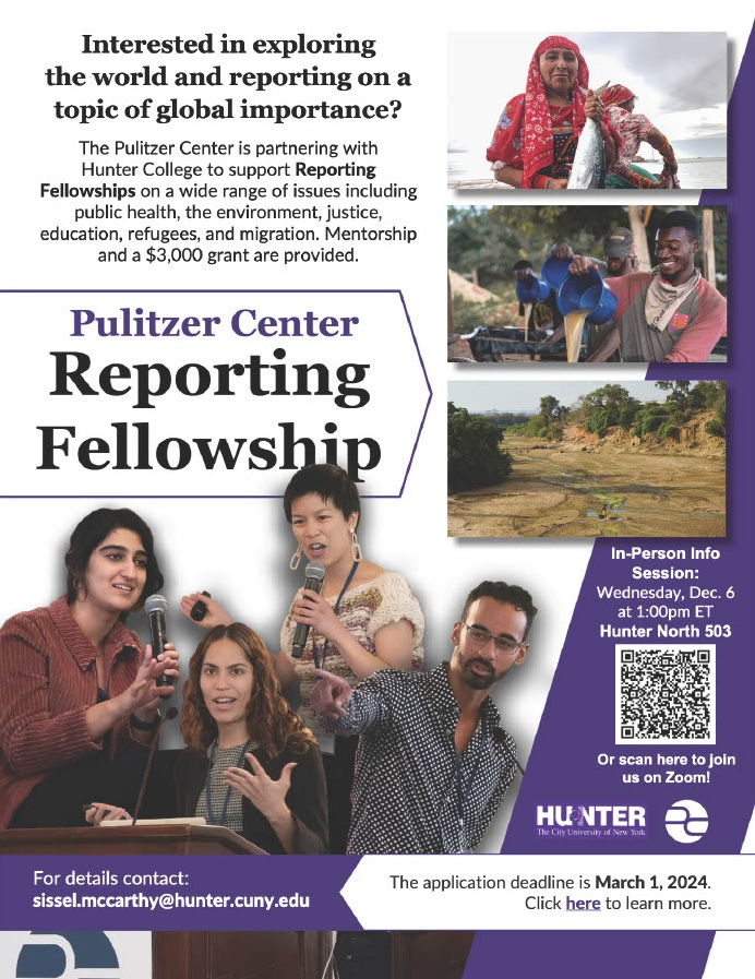 The Pulitzer Center is partnering with Hunter College to support Reporting Fellowships on a wide range of issues including public health, the environment, justice, education, refugees, and migration. Mentorship and a $3,000 grant are provided.