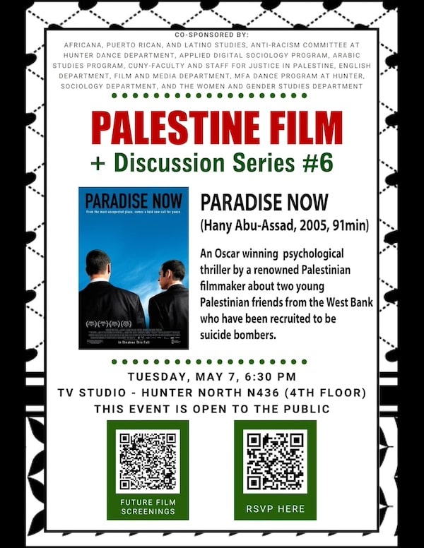 An Oscar winning psychological thriller by a renowned Palestinian filmmaker about two young Palestinian friends from the West Bank who have been recruited to be suicide bombers.