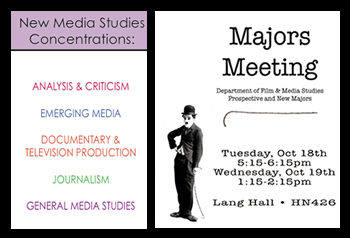 The Film and Media Department is having an upcoming majors meeting for perspective and new majors.