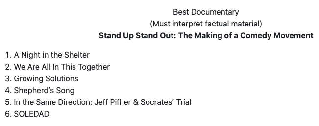 IMA alum David Pavlosky’s film Stand Up, Stand Out: The making of a comedy movement  wins Best Documentary at the Santa Fe Film Festival.