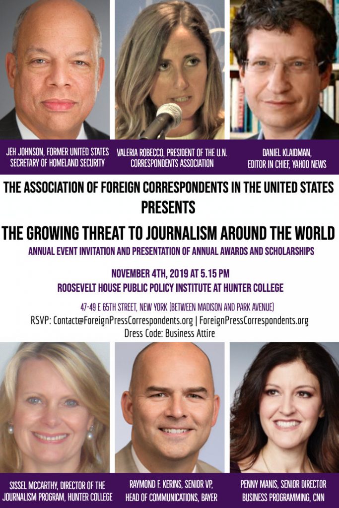 Join a panel on “The Growing Threat to Journalism Around the World,” on Monday, Nov. 4, at the Roosevelt House, 47 East 65th Street.