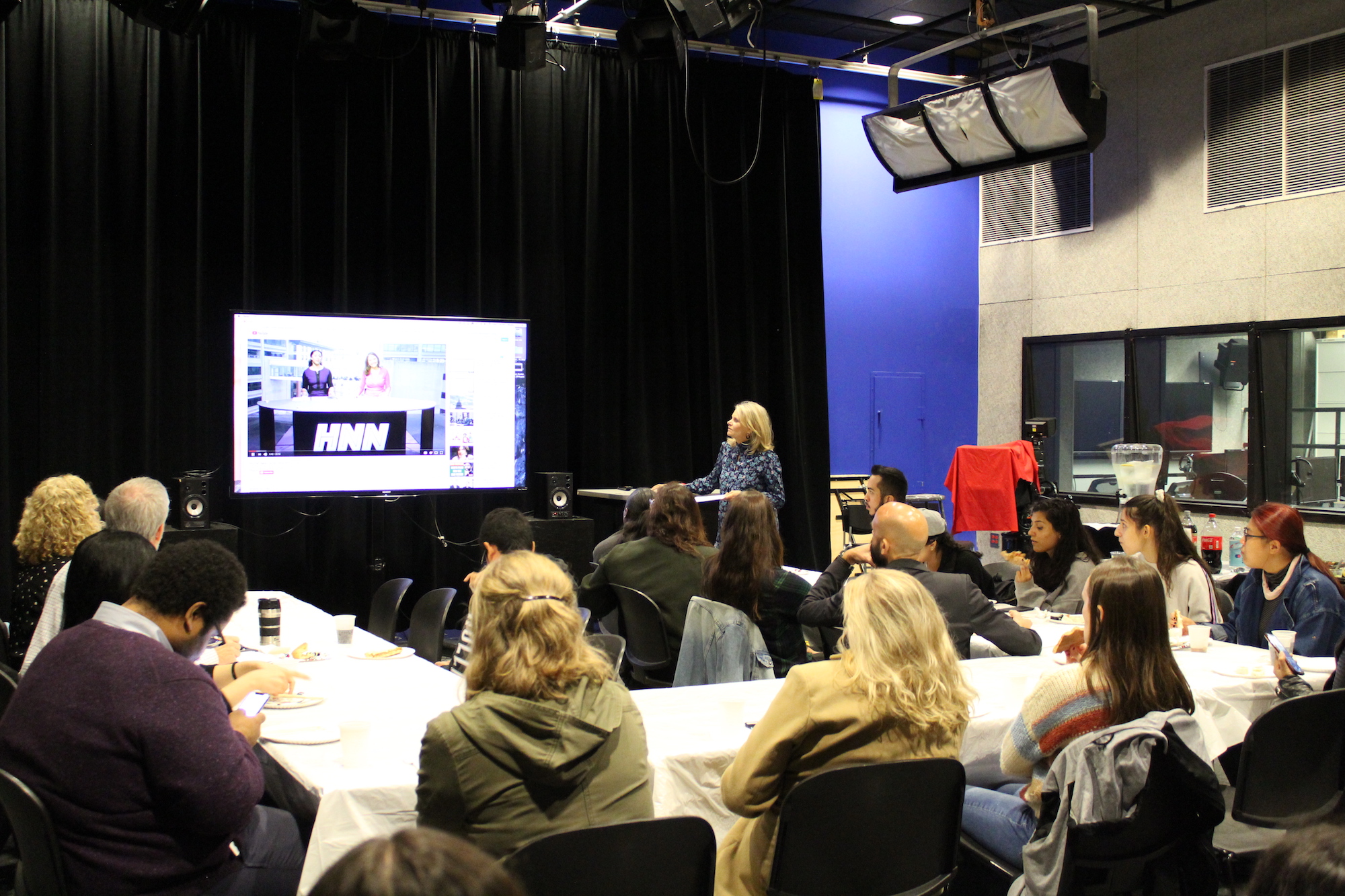 McCarthy spotlighted how the studio news production class, which produces the Hunter News Now newscast, provides students with experience on a live set and gives them an opportunity to create a reel that she said would be extremely helpful when applying to internship and job opportunities.
