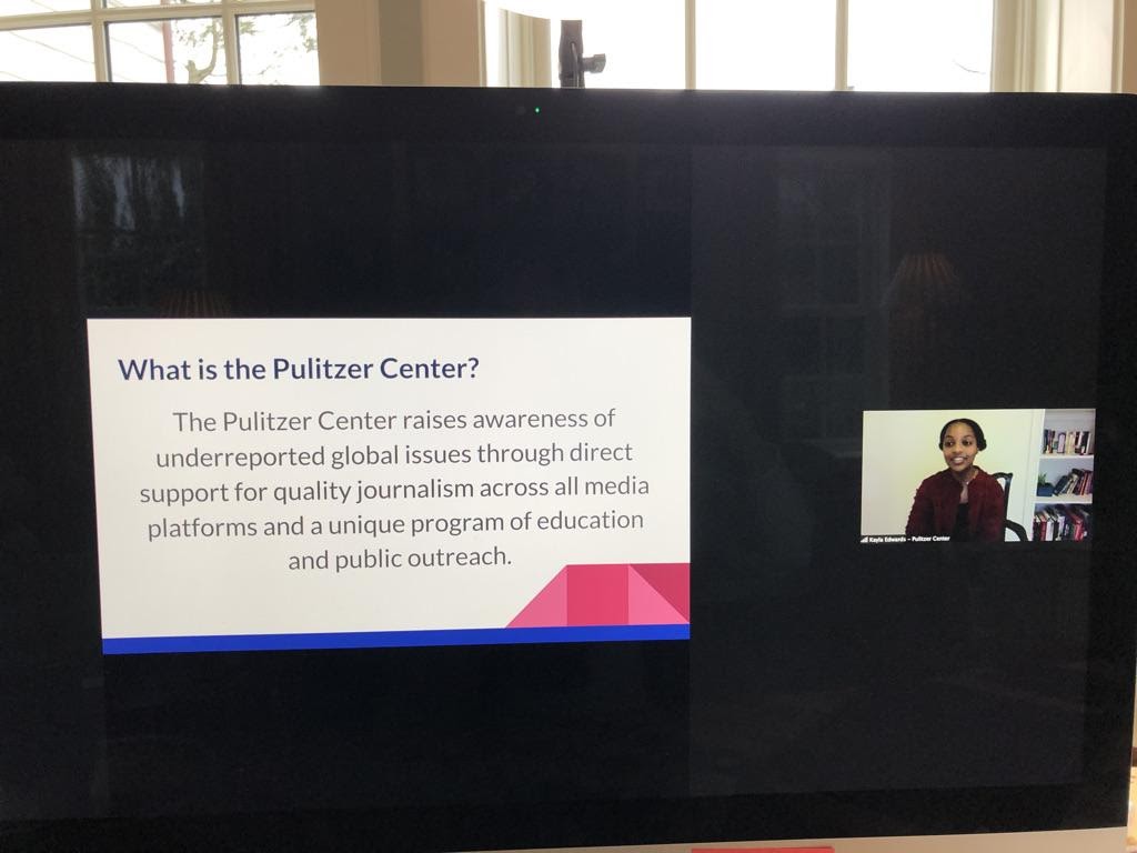 Professor Sissel McCarthy hosted a Zoom session on Dec. 2 so that students could learn about the new focus from the Pulitzer Center’s Outreach Assistant Kayla Edwards and former fellows, Audrey Henson and Kadia Goba.