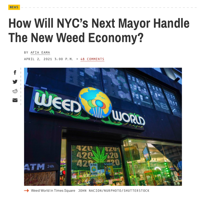 Her deeply researched article on how each of the mayoral candidates would manage legalized marijuana in the city generated a robust online discussion in the comments, a marker of successful journalism in the digital age.
