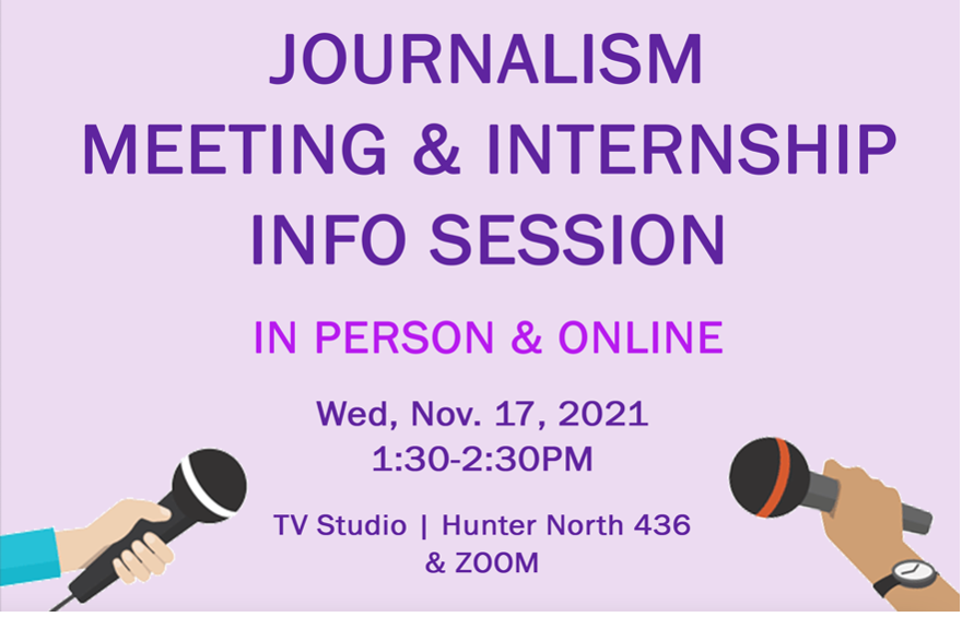 Come hear about our Spring 2022 courses and meet your professors. Internship Coordinator David Pavlosky will also be on hand to give students some valuable tips on finding and landing a journalism internship.