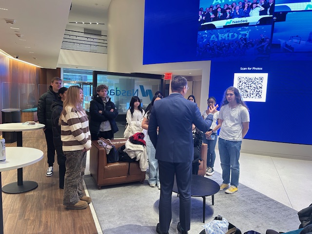 Professor Malpass led the students to the iconic Nasdaq headquarters on Wednesday, November 12, where they were greeted by Nasdaq officials.