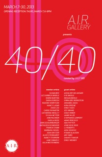Founded in 1972, A.I.R. is the first artist-run gallery for women in the United States. This show pairs the work of 20 member artists with the work of 20 invited guest artists.