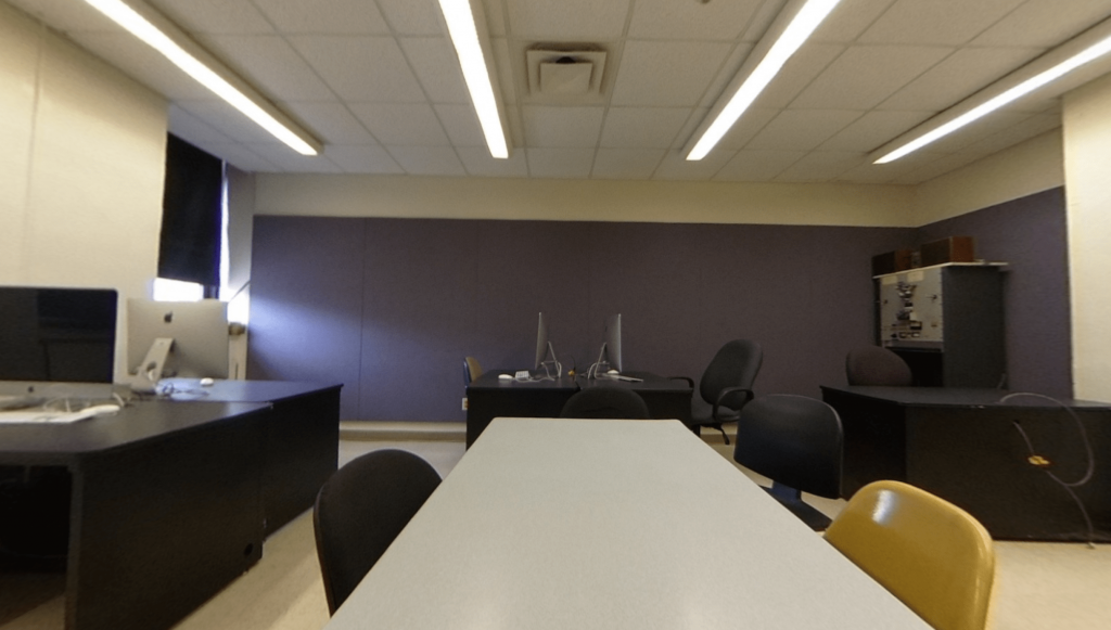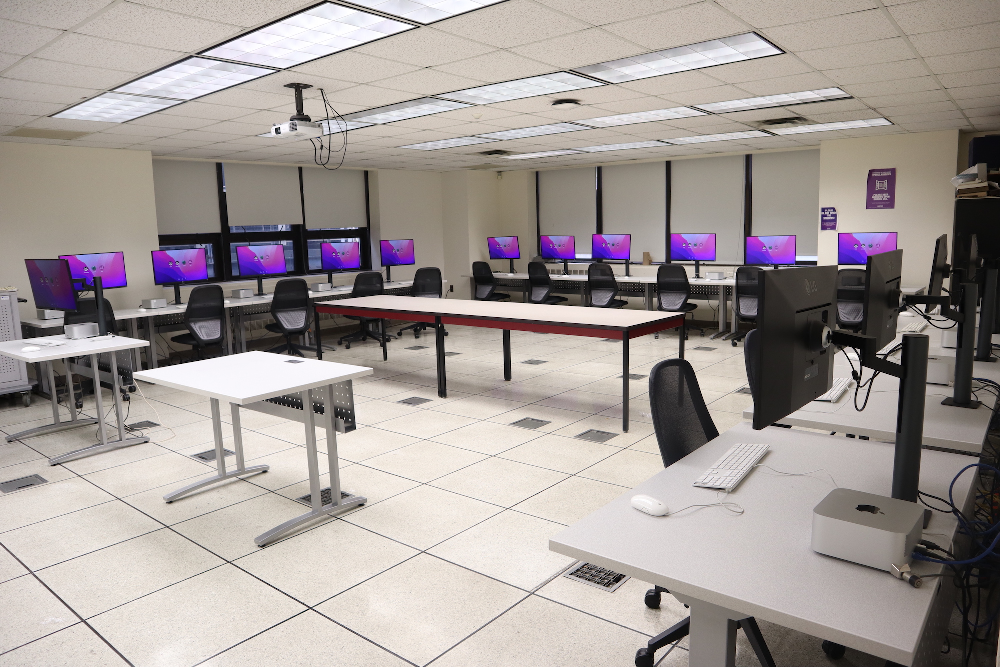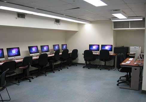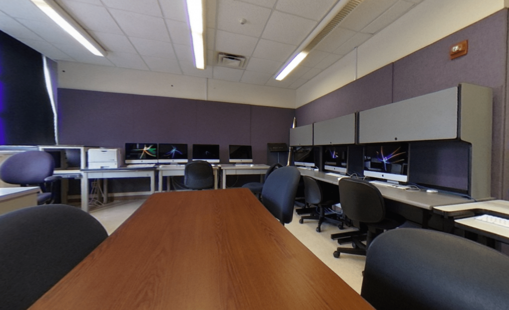 Each machine is equipped with Microsoft Word, Adobe Photoshop and Illustrator, Dreamweaver, Flash, and Max/MSP. Students also have access to scanners, and a HP Laser printer. The computers are routinely checked and maintenance to ensure that students are working on the latest and most up-to-date software and hardware as to prepare them for real world work environment. This lab is used for media production courses but when not occupied, it is an open lab for students to work.
